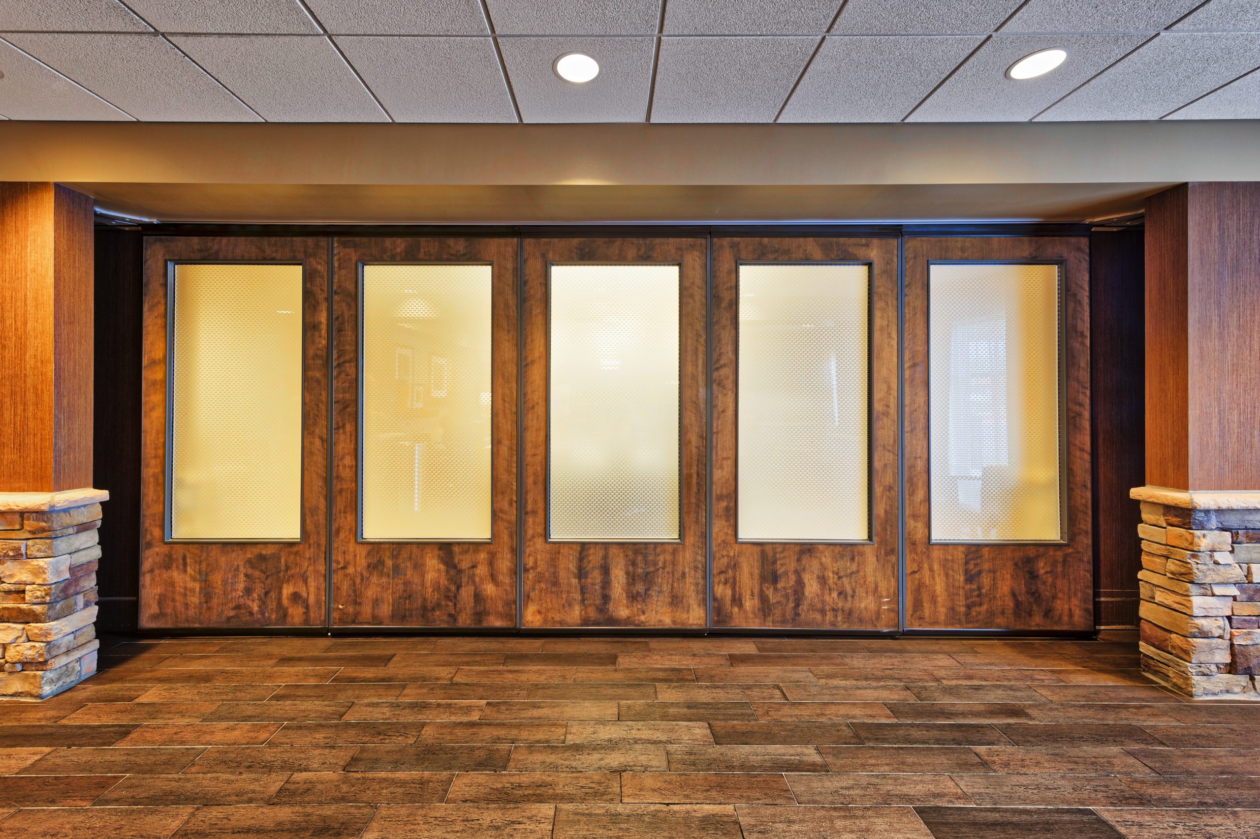 Certified with 48 and 43 STC sound control (4” panel), or 38 STC (3” panel), Luminous Atlas is available in three operational configurations: centerline-stacking hinged-paired panels; individual panels with smooth programmable curve and diverter track, or individual panels with multi-directional 90 degree “X”, “L”, or “T” intersections for complex layouts. Available non-glass panel surface finishes are nearly unlimited! Pick from any of our operable wall finishes.