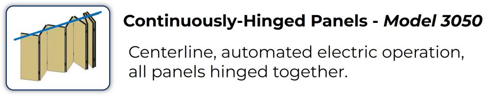 The industry’s premium performance steel panel operable wall, engineered at 4” panel thickness and manufactured for rugged durability to fit openings up to 30’ tall, and in unlimited opening widths. Series 3000 steel panels are certified by independent acoustical laboratory testing to achieve the industry’s best-in-class acoustic performance up to 56 STC.